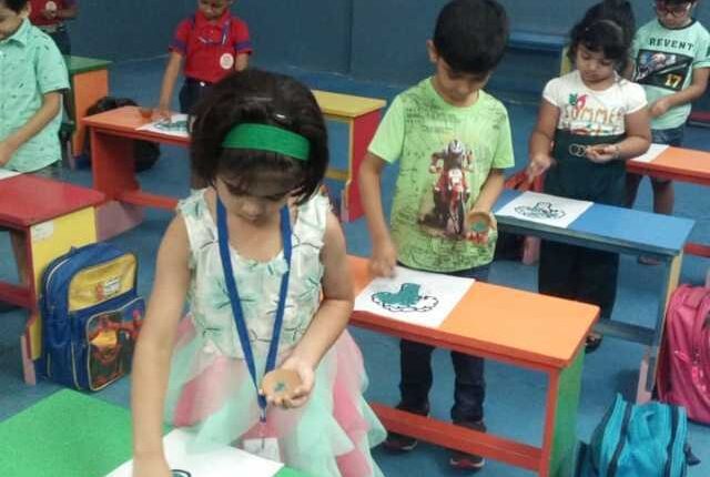 Green Day Celebration (The colour of Prosperity and Harmony) Green Day was celebrated with great zeal and enthusiasm in the Pre-primary wing on 3rd August, 2018.The Playgroup, Nursery and K.G. students and teachers came to school dressed in pretty green attires and looked eco-friendly. Playgroup students performed a poem, show and tell activity had been conducted by class Nursery and K.G. Children wore cutouts of fruits and vegetable and spoke a few lines in front of the children. All the activities were conducted in the concept room. Teachers explained the importance of green colour. Acts of green conveyed the message that we should not cut trees and plant more and more trees. All the students of pre- primary performed saw dust activity in class.