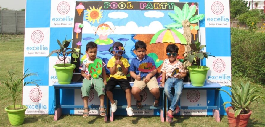 Keeping all this in mind Pre-primary classes of Excellia School scheduled a pool party for the students on 3rd May, 2019. The poolside was beautifully decked up as per the theme. The tiny tots too came in colorful swimsuits and umbrellas and they had a great time enjoying in the water.