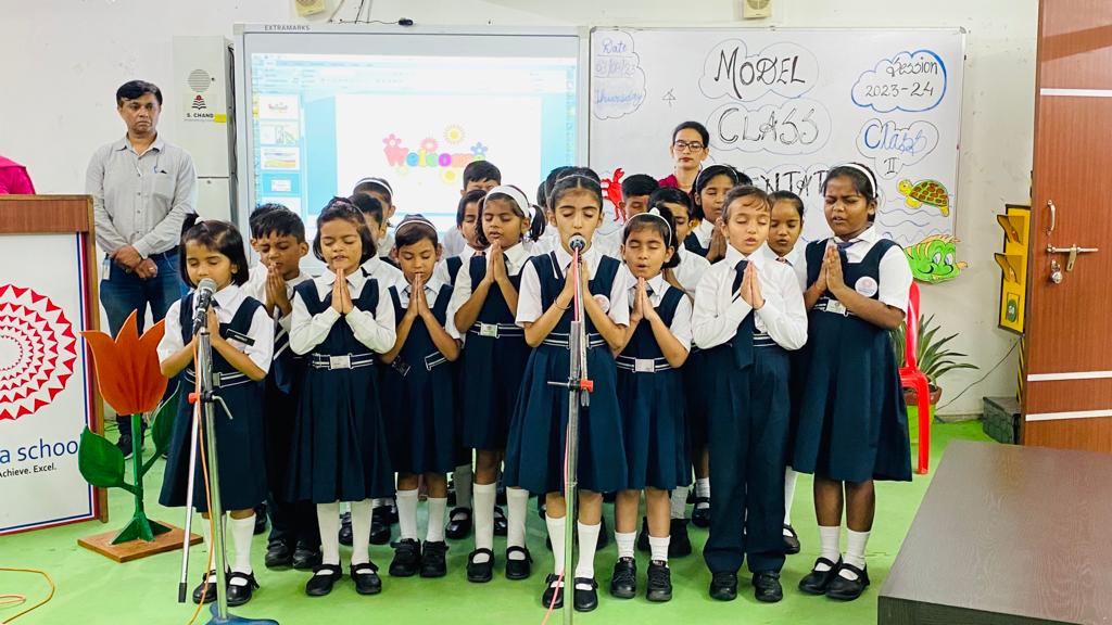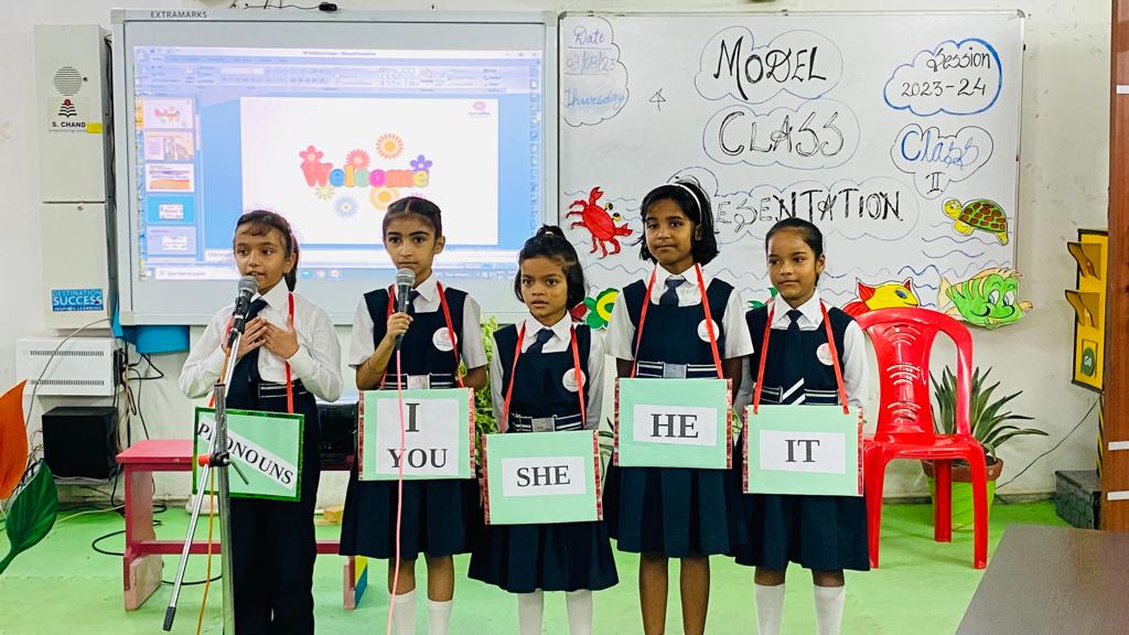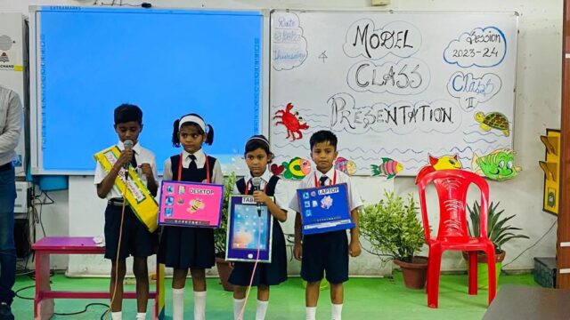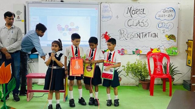 Model class presentation’ is a platform that goes beyond the confines of textbooks and classrooms. Beyond the academic realm, these presentations play vital role in nurturing our students’ confidence and honing their public speaking abilities.