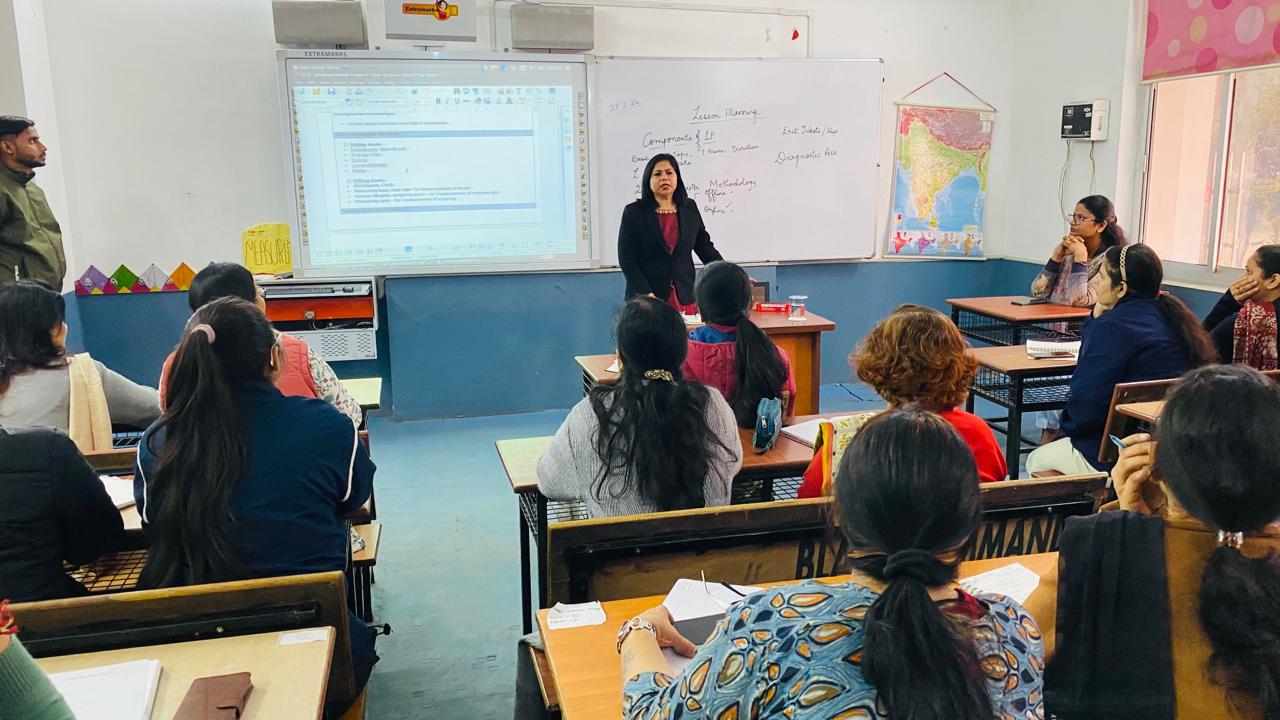 Lesson Planning is the foremost important thing for a teacher to conduct an efficient lecture. A well structured and thoroughly planned Lesson Plan not only provides an insight of teachers work but how planned he/she is while dealing with the students. To acquaint the teachers with the importance of lesson planning, an informal session was conducted by Inspection Head Ms. Roli Pandey on 27th February, 2024. The session was highly interactive and informative which dealt with in depth details of a well structured lesson planning. The teacherโ€™s gained insight of how to implement lesson planning in accordance with their lectures.