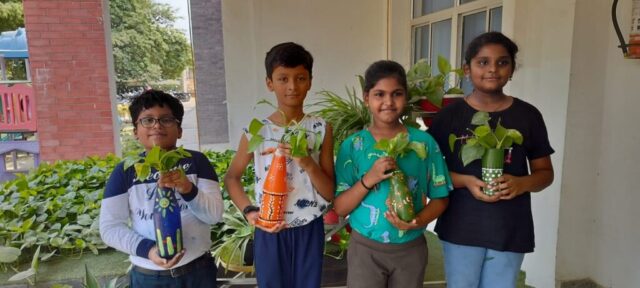 Best out-of-waste simply means to make something innovative and attractive out of the material that is of no use otherwise, creating something new from the old. With DIY items made from waste, one can decorate their home. Anotherday students decorated tomato sauce bottles into a beautiful planters. They also made lanterns with plastic coldrink bottles. Students actively participated in Gross motor skills , non fire cooking , play & fun games , canvas painting, yoga classes , taekwando and many more activities.