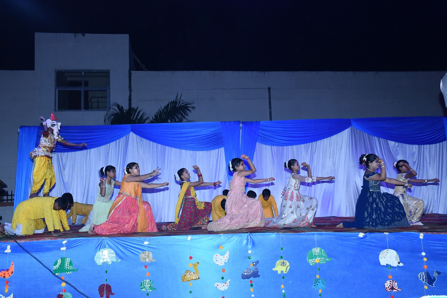 Excellia School celebrated Dance Diya Dhamaal on 26th October, 2024 The evening was filled with traditional music, dance,and cultural activities creating an engaging atmosphere for students, teachers and families. The school playground was decorated with colorful rangolis, garlands, and ethnic decorations reflecting the spirit of festival. The stage was set up for performances, and space was designated for dancing.