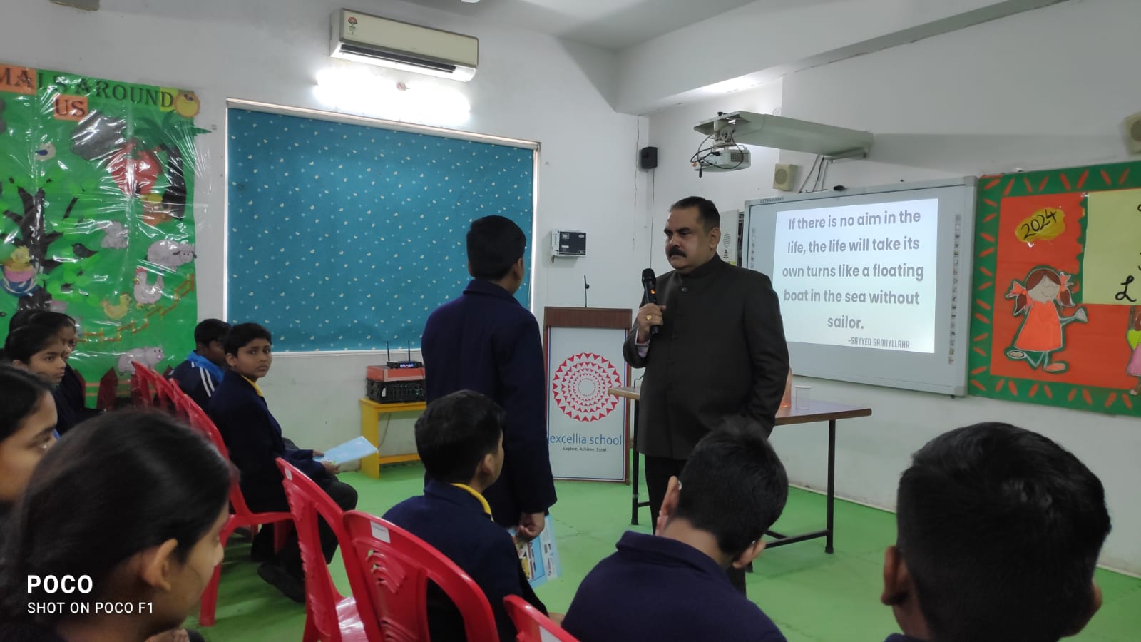 The students of Excellia enjoyed an interactive session that was conducted by the Director Mr Asheesh Pathak on the theme of “Aim of Life”. The informative session was organized to acquaint the students from Grade IX onwards about the vast stream of career options that the students can opt for in the future. Mr. Pathak ensured that each and every student participates in the session. The students also keenly listened to the Director and were amazed to know about the plethora of career options that they can opt from through their desired stream. Overall the session was fruitful with the students gaining insight to what they want to attain in life.