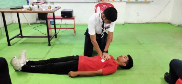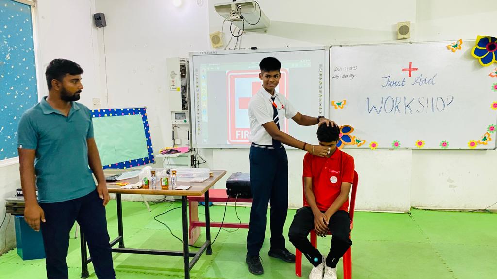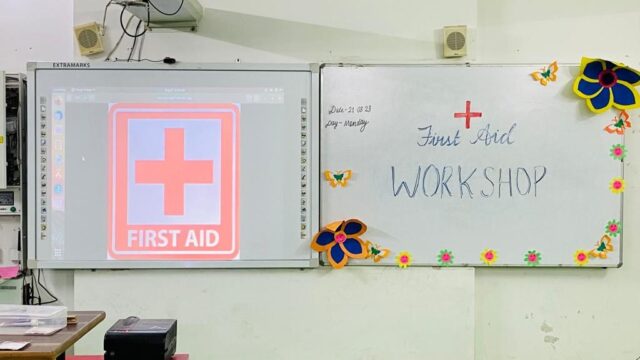 The School ensures that the students must be aware about health care and fitness. Therefore on the occasion of Red Cross Day , first aid workshop was conducted by Mr. Akash Singh in which he discussed about various ways and means with which the lives could be saved under different circumstances like what measures could be taken when someone suffers from cardiac arrest , ways to stop nose bleeding, how to cure dog bites, ways to give CPR and many more. The students were given practical demonstration. They keenly listened to what their mentor was teaching and enthusiastically participated in practical demonstration.