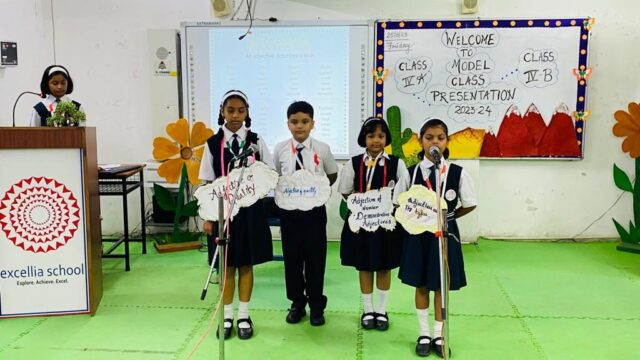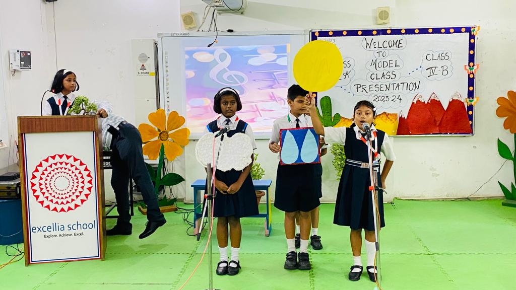 Abiding by these words the students of class IV-B at Excellia School presented a fascinating model class presentation on 25th August’ 2023 inside the school premises. The Presentation was beautifully and enthusiastically compered by the students of grade IV-B who began their class presentation with a beautiful prayer which proceeded with subject specific presentation which mesmerized the audience. The Students also presented their own creative school song which was appreciated by the parents. The Principal Mrs.Priyanka Dubey presented the vote of thanks to all the guardians and parents for sparing their valuable time to witness their war’s wonderful and engrossing performance.