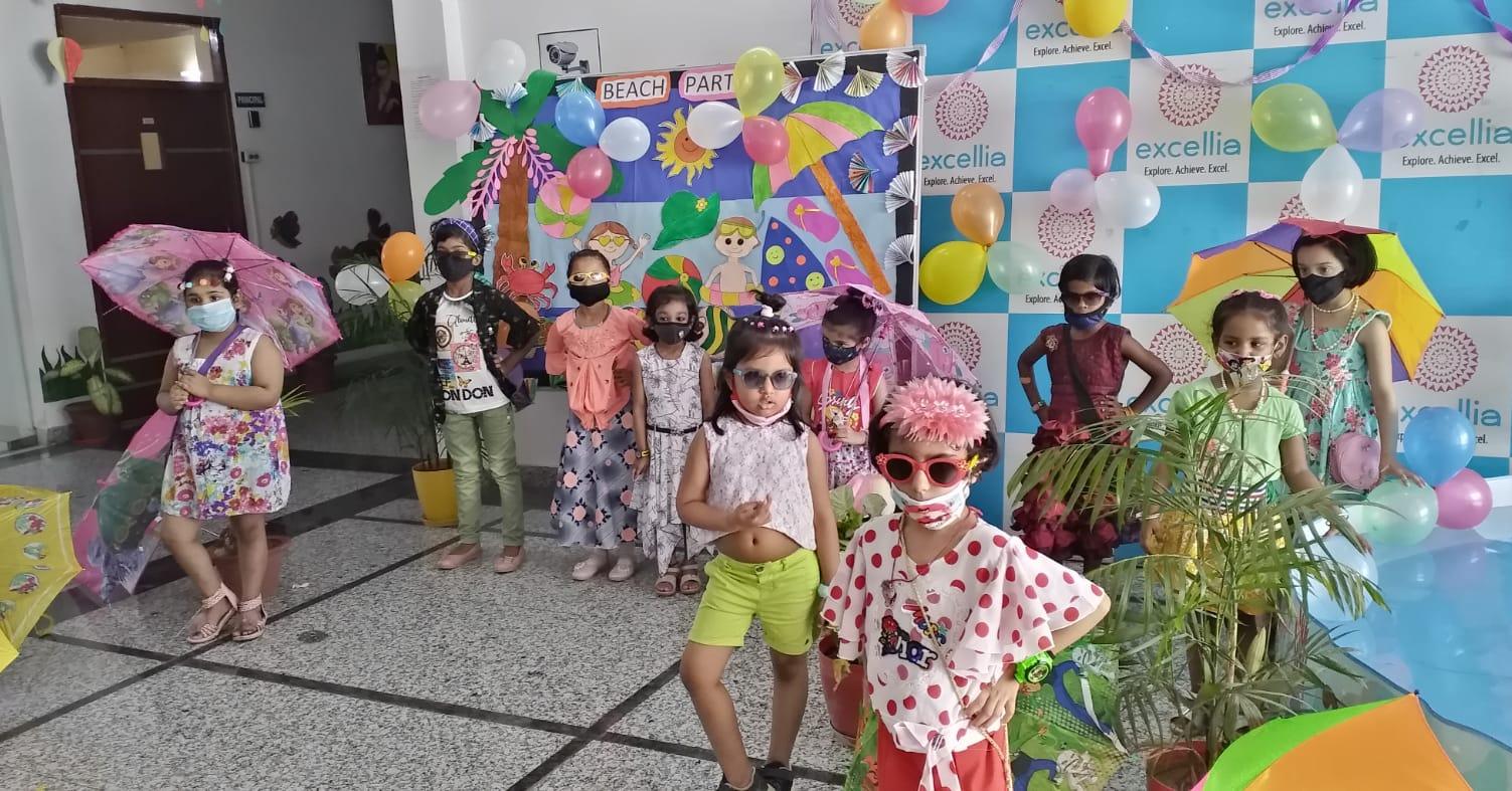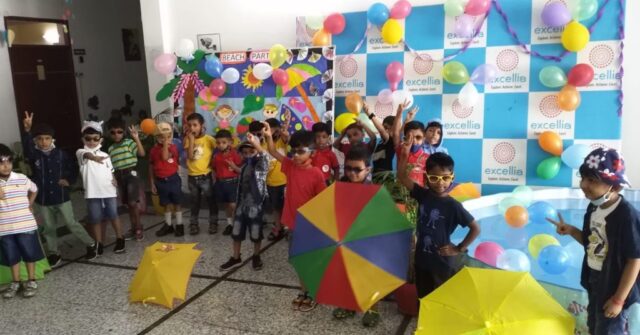 A pool party was organised at Excellia School for the kids of Pre-primary on 13th May 2022 (Friday). The kids had a gala time, tapping their little hands and feet, bubbling and splashing water all around. Little kids filled the poolside with their giggles and laughter. Tiny tots were dressed in colourful dresses for pool party. They tapped their feet to famous rain songs and recited poem of rainy day. The event was enjoyed by our little ones and a kick of start for everyone to enjoy the summer with new zeal.
