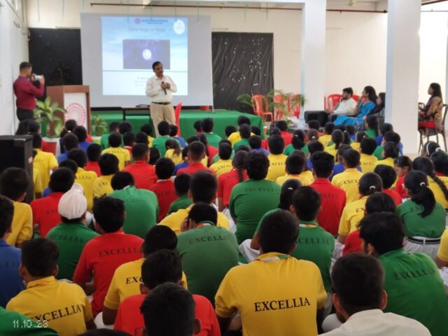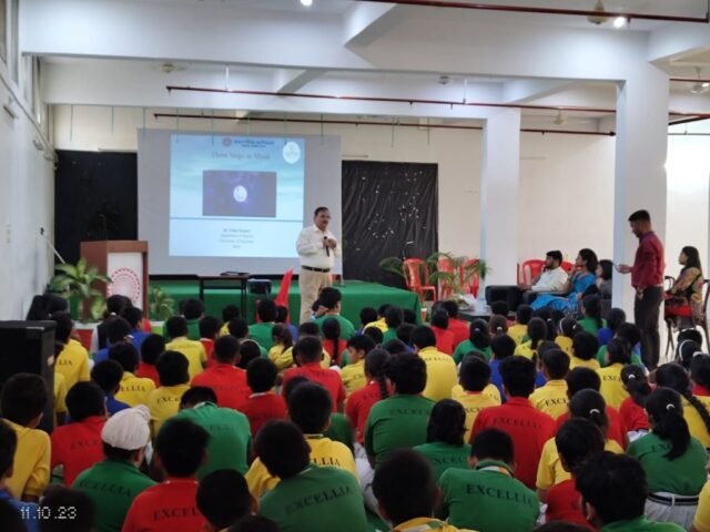 Pressing belief on the above mentioned quote, an interactive session was organized in Excellia School on October 11, 2023 wherein ๐๐ซ. ๐๐ฎ๐ง๐ข๐ญ ๐๐ฎ๐ฆ๐๐ซ, ๐๐ฌ๐ฌ๐จ๐๐ข๐๐ญ๐ ๐๐ซ๐จ๐๐๐ฌ๐ฌ๐จ๐ซ, ๐๐๐ฉ๐๐ซ๐ญ๐ฆ๐๐ง๐ญ ๐จ๐ ๐๐ก๐ฒ๐ฌ๐ข๐๐ฌ ๐๐ญ ๐๐ง๐ข๐ฏ๐๐ซ๐ฌ๐ข๐ญ๐ฒ ๐จ๐ ๐๐ฎ๐๐ค๐ง๐จ๐ฐ graced the event with his benign presence, educating the students about how India finally marked its presence on the moonโs surface. Dr Kumar began his presentation with Chandrayan-1 and finally concluded with the how chandrayan-3 finally crossed moonโs orbit and successfully landed on moonโs surface. The students intently listened to Dr. Kumar. The Director of school integrated program EMCC Mrs Shalini Pathak welcomed Dr Kumar and Organizing Secretary of Vibha Awadh Mr Ashutosh Singh with a welcome bouquet. The Principal presented the memento of thanks to both the dignitaries and thanked them for taking their time out and enlightened the studentโs with the wonderful words of wisdom.