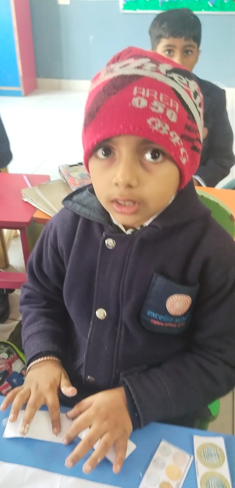 Class-1 A students recapitulated the chapter of Money by making a mind map of Money bag. Children have enjoyed the activity by sticking the stickers from the money chart for forming the addition and subtraction sums.