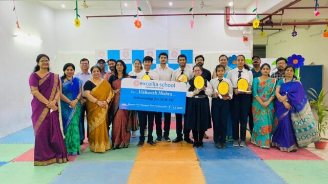 𝐒𝐡𝐢𝐯𝐚𝐧𝐢 𝐌𝐚𝐮𝐫𝐲𝐚 was felicitated by the principal. Grade X school topper 𝐕𝐢𝐬𝐡𝐯𝐞𝐬𝐡 𝐌𝐢𝐬𝐡𝐫𝐚 bagged scholarship worth Rs.75000 for scoring 96% in Grade X. Subject toppers namely 𝐎𝐣𝐚𝐬𝐯 𝐒𝐢𝐧𝐠𝐡 , Grade XII for English and Mathematics, 𝐃𝐞𝐞𝐩𝐚 𝐌𝐚𝐦𝐭𝐚𝐧𝐢 of Grade XII for History, 𝐌𝐞𝐝𝐡𝐚𝐧𝐬𝐡 𝐒𝐚𝐱𝐞𝐧𝐚 of Grade X for Science, 𝐀𝐫𝐧𝐚𝐯 𝐓𝐢𝐰𝐚𝐫𝐢 of Grade X for Mathematics and 𝐀𝐧𝐠𝐞𝐥 𝐌𝐚𝐮𝐫𝐲𝐚 of Grade X for Science respectively were felicitated by the honourable members of the management for bringing fame to Excellia. Certificates & mementos were handed out, acknowledging their efforts and commitment to personal development.