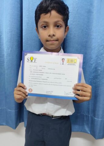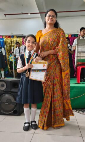 Aadhya Pandey of Class 2 has secured Rank 1 in the SOF International General Knowledge Olympiad (IGKO). She will be awarded a Gold Medal, Certificate of Excellence, and a ₹1000 gift voucher.